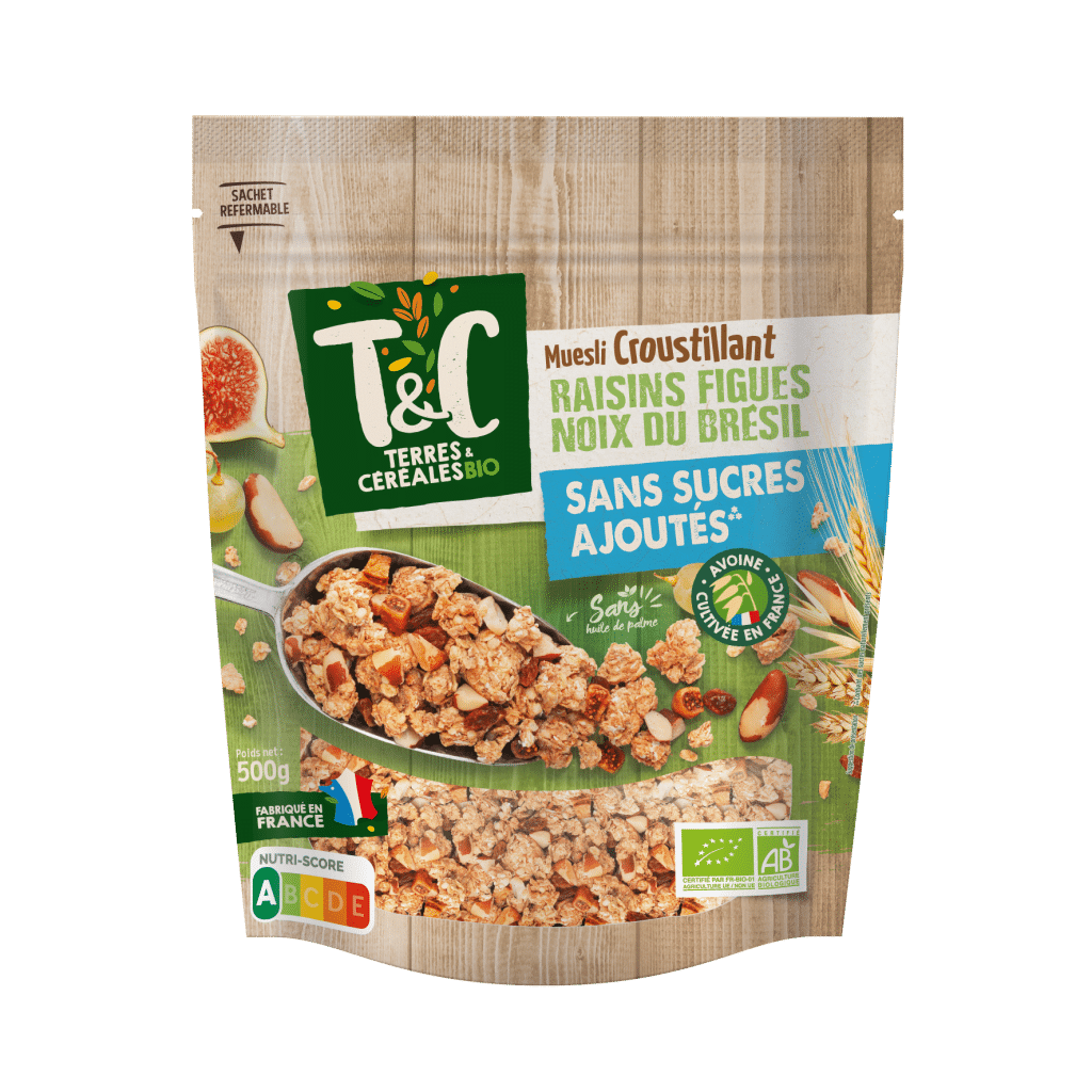 Le muesli croustillant raisins figues et noix du Brésil est sans sucres ajoutés et tout aussi croustillant que le reste de notre gamme ! L’association des fruits et de la noix du Brésil apporte un mélange de saveurs idéal pour le matin. Un petit déjeuner gourmand, moins sucré et riche en fibres.