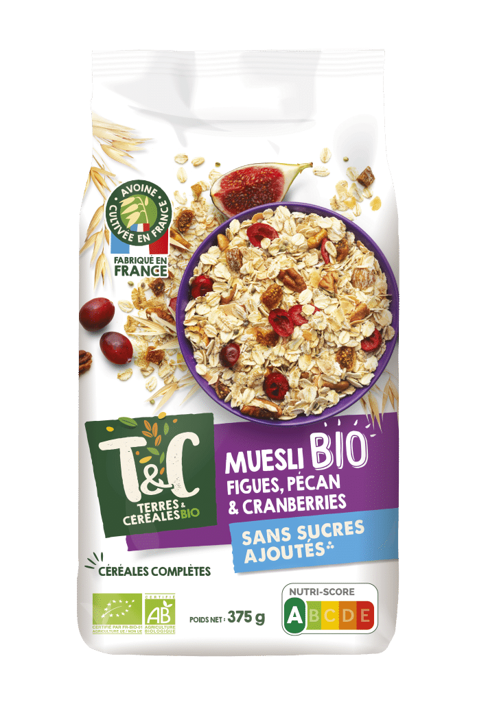 Une délicieuse recette à base de flocons d’avoine complets et de flakes de blé croustillants. La saveur sucrée de la figue se marie parfaitement à l’acidité des cranberries et au croquant des noix de pécan. Une recette sans sucres ajoutés.